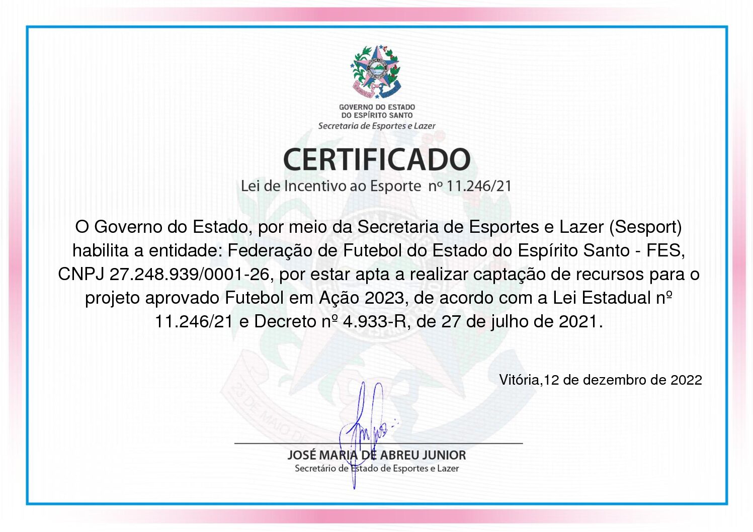 A Federação de Futebol do Estado do Espírito Santo (FES) …